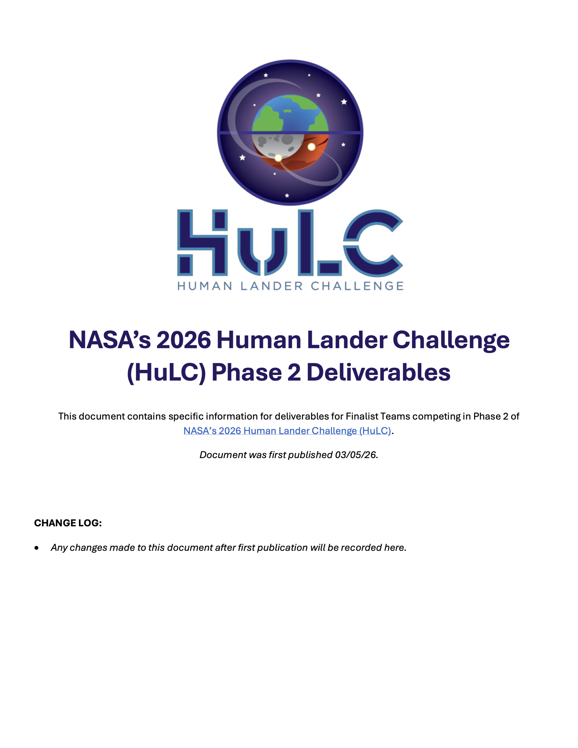 | June 23-25, 2026 | NASA's 2026 HuLC Competition Forum in Huntsville, AL |